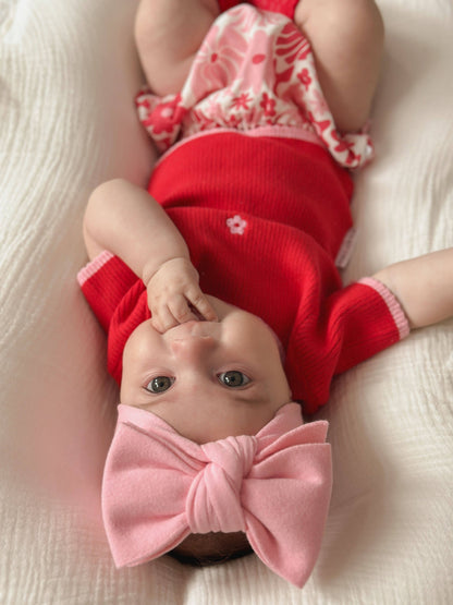 Elodie ribbed short sleeve tee with mini scallop hem detail, featuring Maeve coloured binding and embroidered flower on front. Mix and match with our Elodie, Margot, Rosa + Maeve Collections.